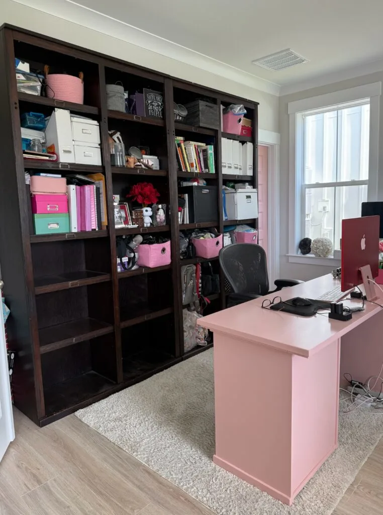 Ever stand in front of an old, dark office bookshelf and feel like it’s quietly judging your decorating choices? Same. I turned one of those heavy, sad shelves into something light, modern and actually fun to look at, and spoiler: it didn’t take weeks of sweat and tears. All it took was a little sanding, a coat of primer, and a paint sprayer for a buttery-smooth finish. We even pulled off the hardware, painted them gold for that little pizzazz, and — because I know you love a good reveal — I embedded a step-by-step YouTube video that shows the before, during and after.