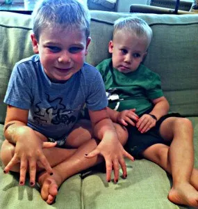 My husband wasn’t thrilled—but he also hasn’t grabbed the polish remover and taken it off himself. I think that we’ll remove it in time for the start of school next week, but for now, I’m happy to let them admire their brightly colored nails as they play “monster and robot” and chase each other around the yard with water guns.