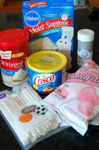 - 1 container of white frosting (I used whipped frosting, which is lighter, so I ended up using an entire XL container)